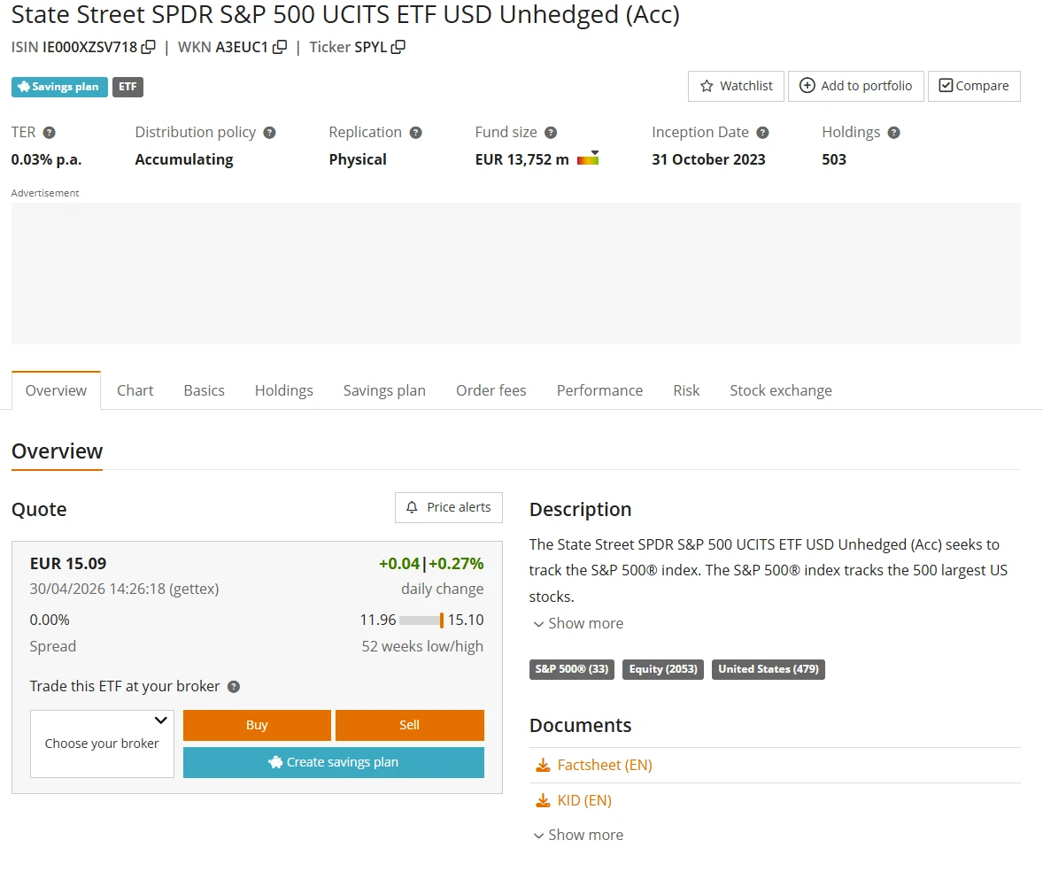 Пример 3: State Street SPDR S&P 500 UCITS ETF (Acc)