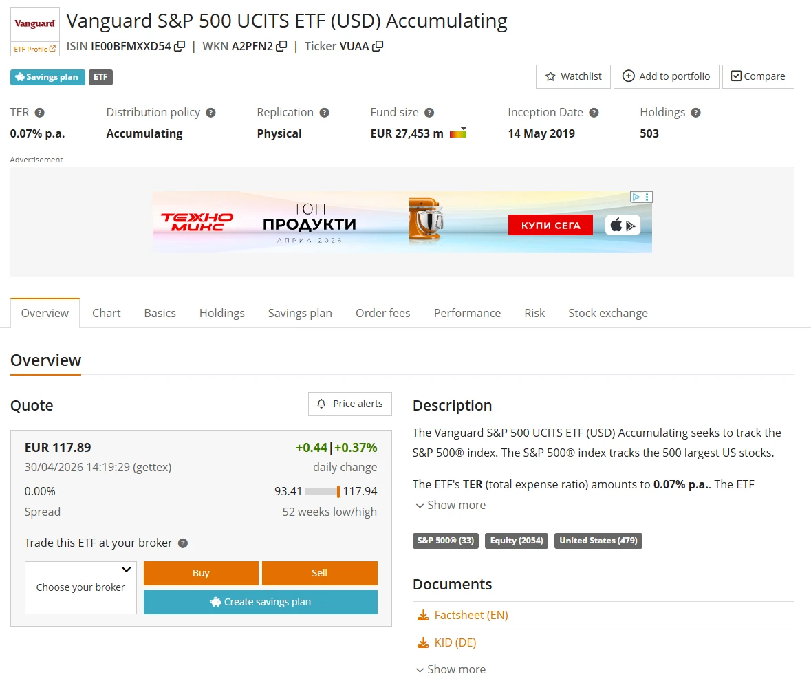 Пример 1: Vanguard S&P 500 UCITS ETF (Acc)
