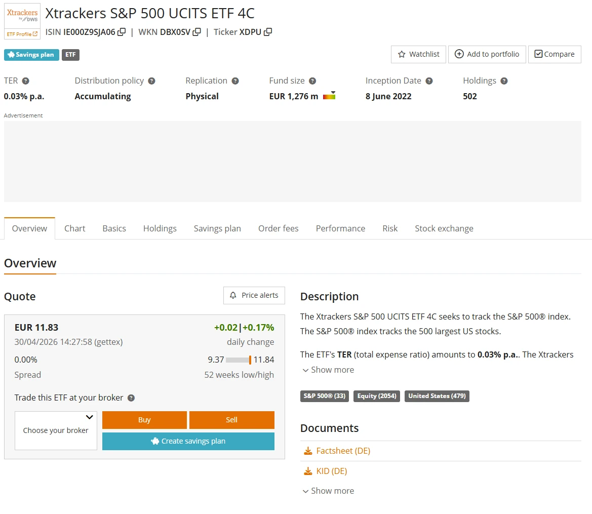Пример 4: Xtrackers S&P 500 UCITS ETF 4C